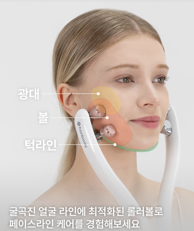 혼바디 롤러는 저주파 EMS와 고주파 RF가 고민부위를 자극하여 얼굴 라인을 만드는데 도움을 주고, 근육을 자극하여 탄탄한 얼굴라인을 만들어줍니다. 또, 간편하게 버튼을 누르고 밀어주면서 얼굴라인관리가 가능하여 간단하게 사용하실 수 있습니다.