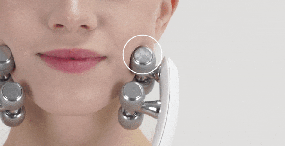 - 원하는 모드와 강도를 선택하고 롤러를 얼굴 위, 아래 또는 앞, 뒤 방향으로 굴리며 5-10분 정도 마사지 해주세요.